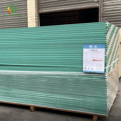 Gesamt-, Feuchtigkeit-beständiger Gipskarton ist eine in hohem Grade effektive Lösung für Kontrollefeuchtigkeit und Feuchtigkeit in den Innenräumen, und es ist ein wesentliches Baumaterial für irgendeinen Bereich, in dem Feuchtigkeit und Feuchtigkeit ein Interesse sind.